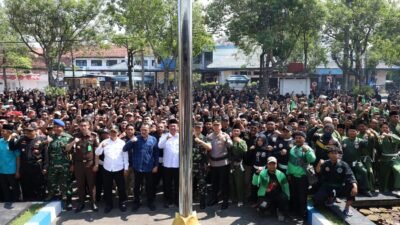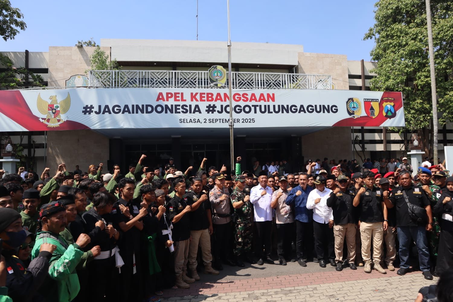 Apel Kebangsaan ini mengusung tema โJaga Indonesia, Jogo Tulungagungโ, yang berlangsung di halaman Pemkab Tulungagung, pada Selasa, (02/09/2025) sebagai simbol komitmen menjaga kondusifitas wilayah, mempererat persaudaraan, serta menolak segala bentuk provokasi dan perpecahan.