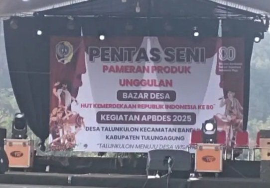 ๐ผ๐๐ฟ๐๐๐ผ๐๐๐๐.๐พ๐๐,๐๐๐๐๐๐๐ผ๐๐๐๐ โ Desa Talunkulon, Kecamatan Bandung, Kabupaten Tulungagung, menggelar Bazar dalam rangka memperingati Hari Besar Nasional (PHBN) sekaligus HUT Kemerdekaan RI yang ke-80. Acara dibuka pada Jumat (22/8/2025) dengan penampilan drumband dan reog oleh siswa-siswi dari sekolah unggulan desa.