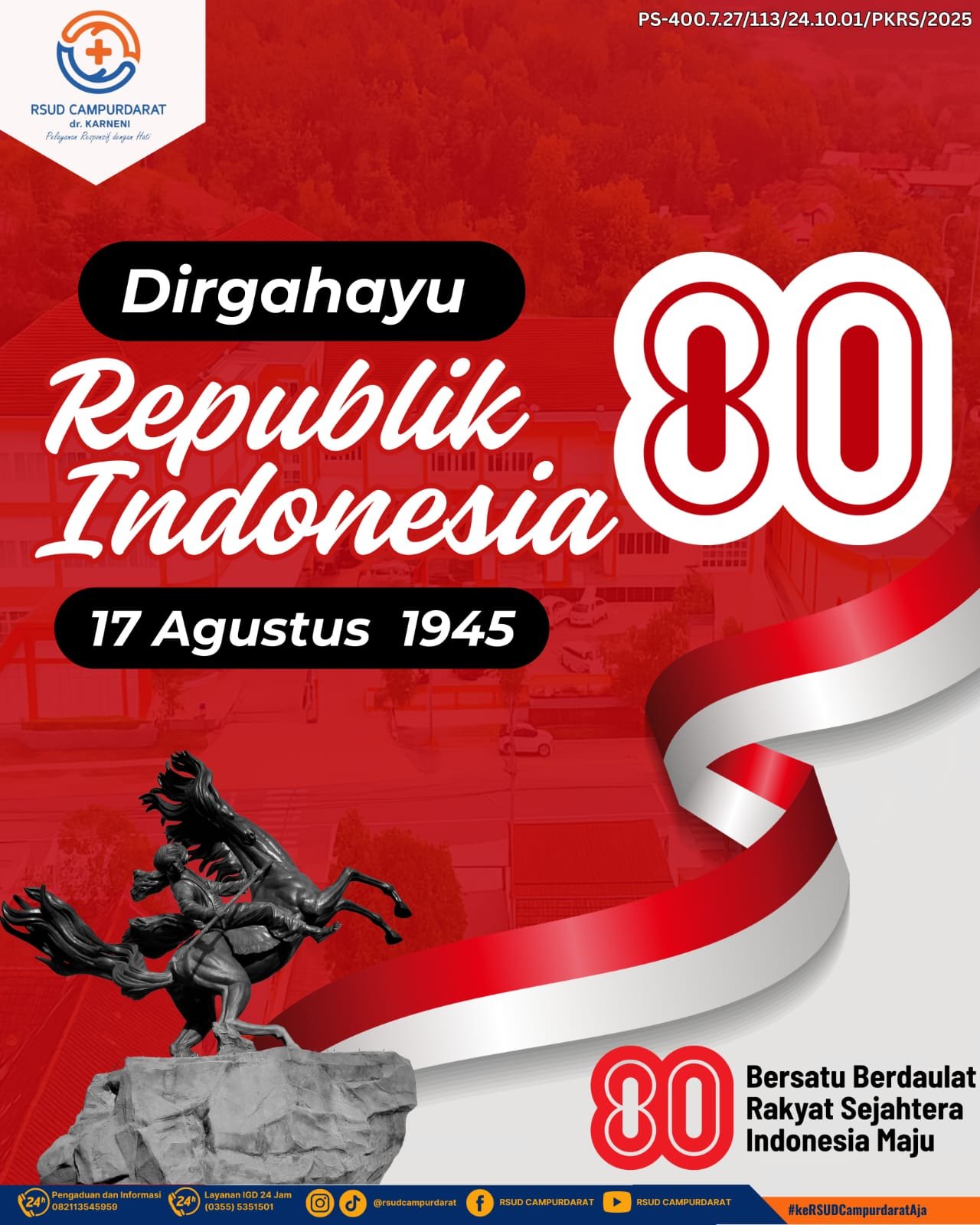๐ผ๐๐ฟ๐๐๐ผ๐๐๐๐.๐พ๐๐,๐๐๐๐๐๐๐ผ๐๐๐๐ โ Dalam rangka memperingati Hari Ulang Tahun (HUT) ke-80 Kemerdekaan Republik Indonesia, jajaran pegawai RSUD Campurdarat dr. Karneni menampilkan kekompakan dengan mengenakan busana bernuansa merah putih serta pakaian perjuangan.