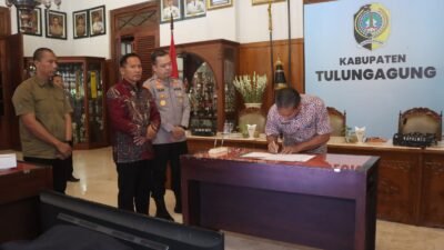 ๐ผ๐ฃ๐๐๐ ๐๐ฃ๐๐ฌ๐จ.๐๐ค๐ข – TULUNGAGUNG โ Dalam upaya menjaga ketertiban umum, kenyamanan masyarakat, serta keselamatan bersama, Pemerintah Kabupaten Tulungagung bersama jajaran Forum Komunikasi Pimpinan Daerah (Forkopimda) menggelar Rapat Koordinasi (Rakor) terkait penggunaan sound system yang dikenal masyarakat sebagai sound horeg, Kamis (24/7/2025), di Ruang Pringgitan Pendapa Kongas Arum Kusumaning Bongso.
