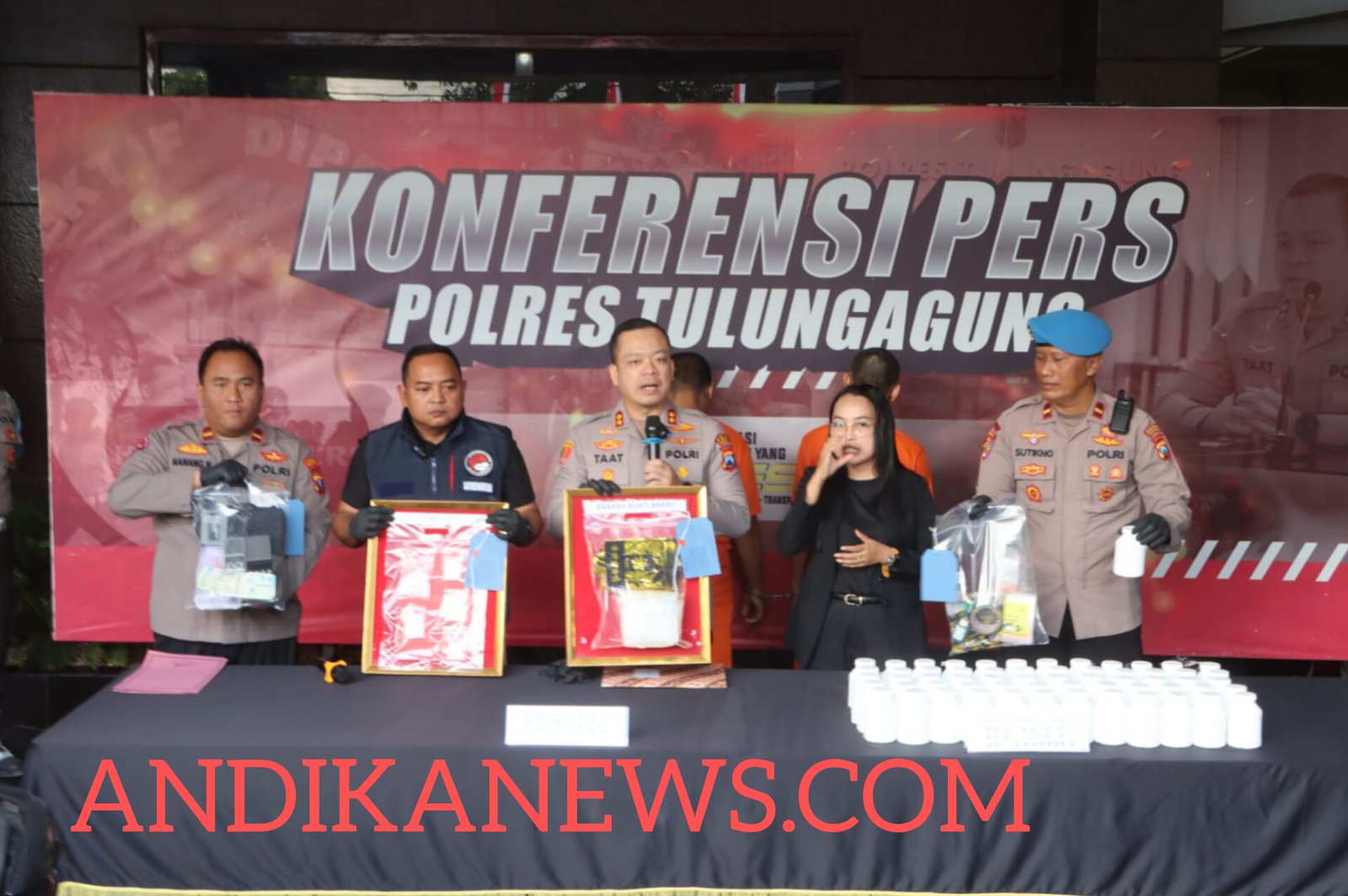 โBerdasarkan keterangan tersangka, ini kali kedua menerima paket sabu. Dari analisa sementara, diprediksi sangat kuat melibatkan jaringan antar negara di kawasan Asia Tenggara. Namun penyelidikan masih terus dilakukan,โ ujar Kapolres saat konferensi pers di halaman Mapolres Tulungagung, Kamis (14/8/2025).