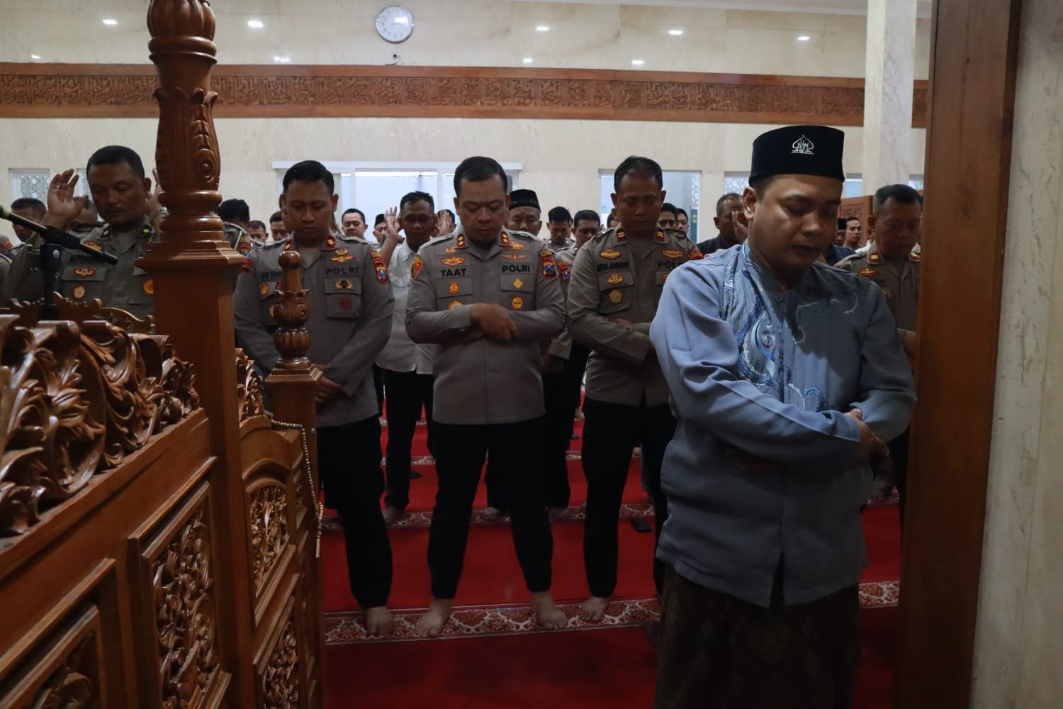 Kapolres Tulungagung AKBP Muhammad Taat Resdi turut hadir bersama jajaran Pejabat Utama dan personel Polres Tulungagung yang sekaligus menjadi jamaah.